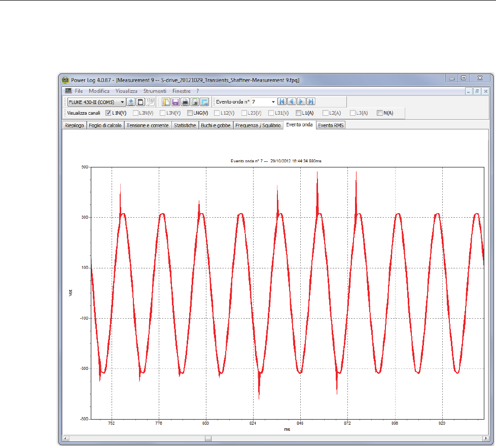La scheda WAVE EVENT (EVENTO ONDA) mostra le forme d'onda di tensione e