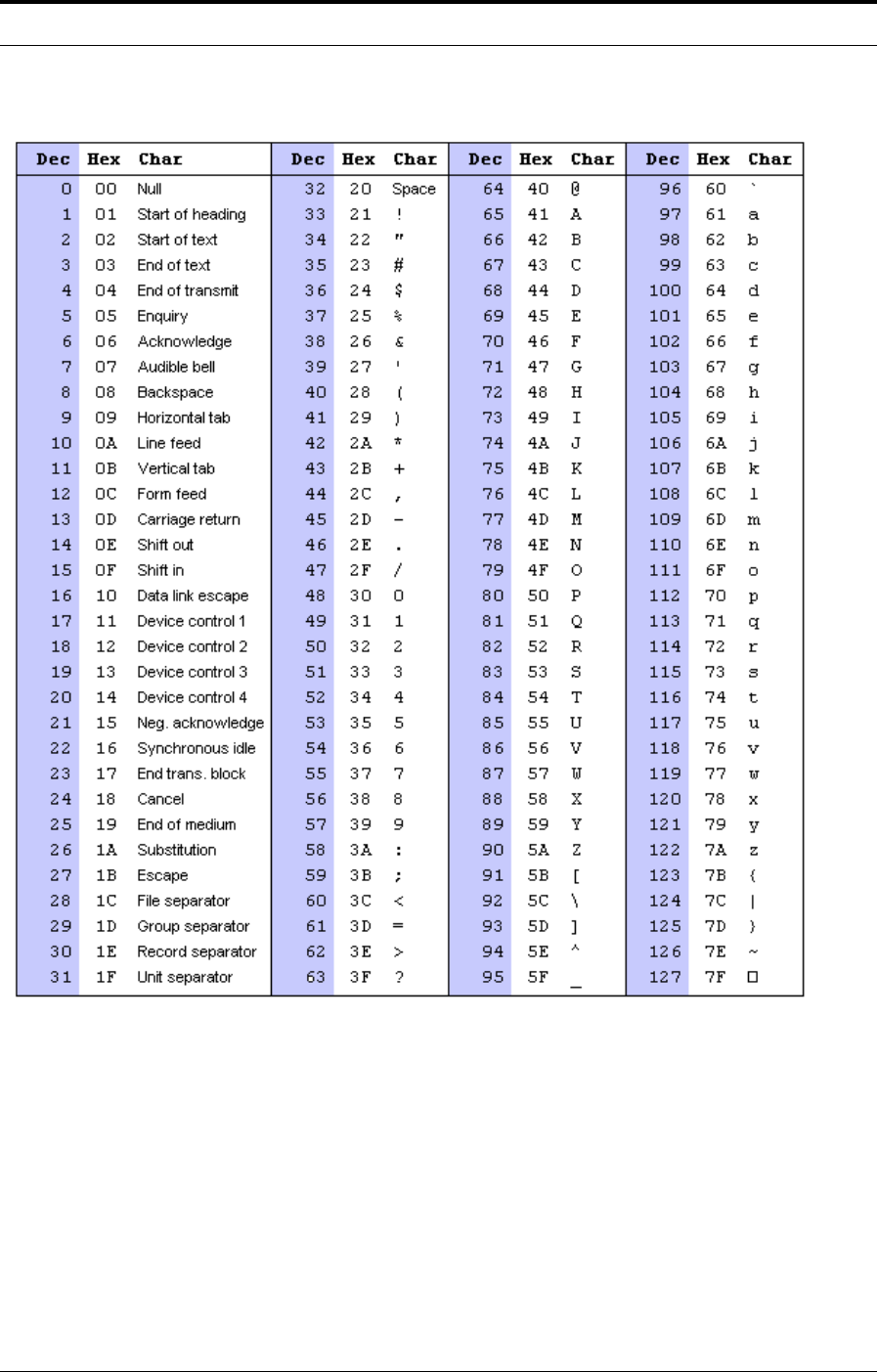 ASCII Codes ..................................................................................................................... 58