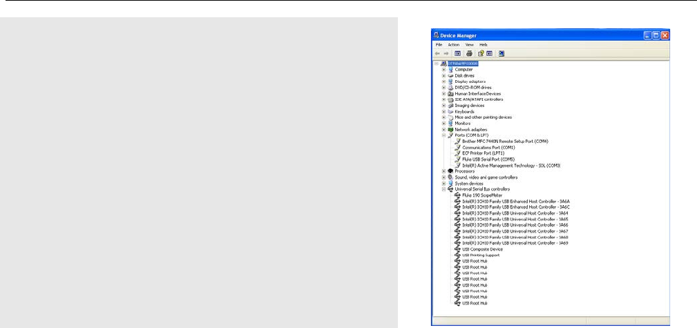 USB Serial Port COM(5)" (Последовательные USB- и COM-порты Fluke) и выберите меню