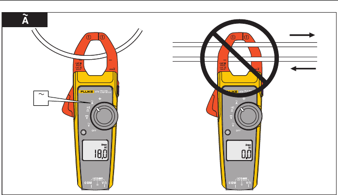 • Never measure ac current while the test leads are inserted into the input jacks.