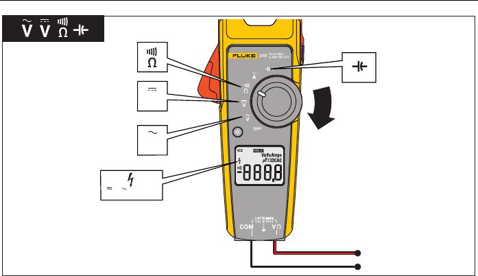 The Fluke 373 Clamp Meter (the Meter) measures true-rms ac and dc voltage, ac current,