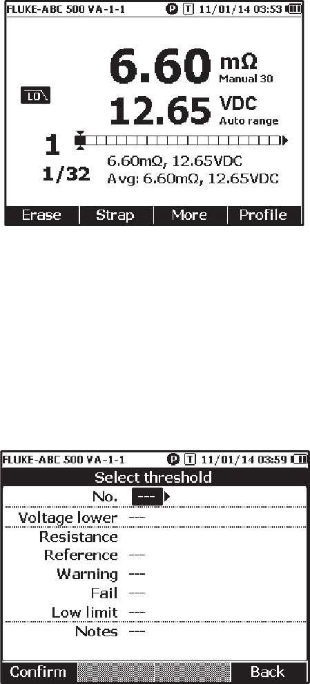 1. On the measurement screen, push the More softkey and Threshold softkey to open the Select