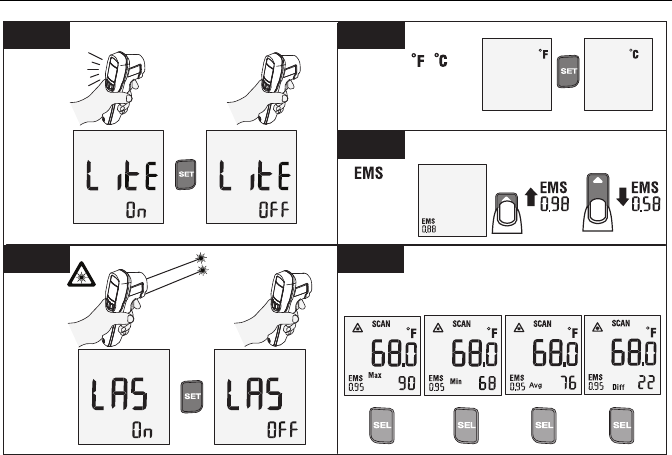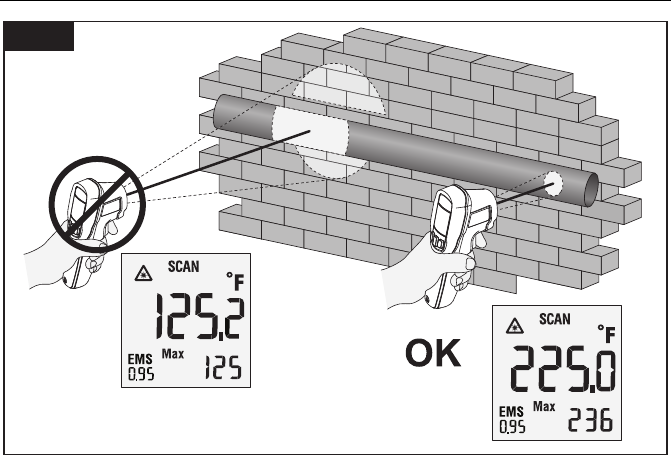 • 実際の温度測定の前に、放射率に関する情報を参照してください。反射性の