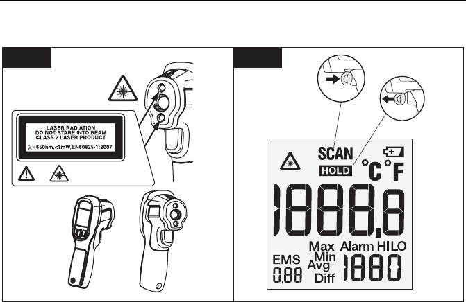 • レーザー光を直接見ないでください。レーザー光を直接または反射面を介し