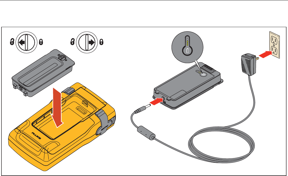 Figure 3. Retrait de la batterie et utilisation du chargeur