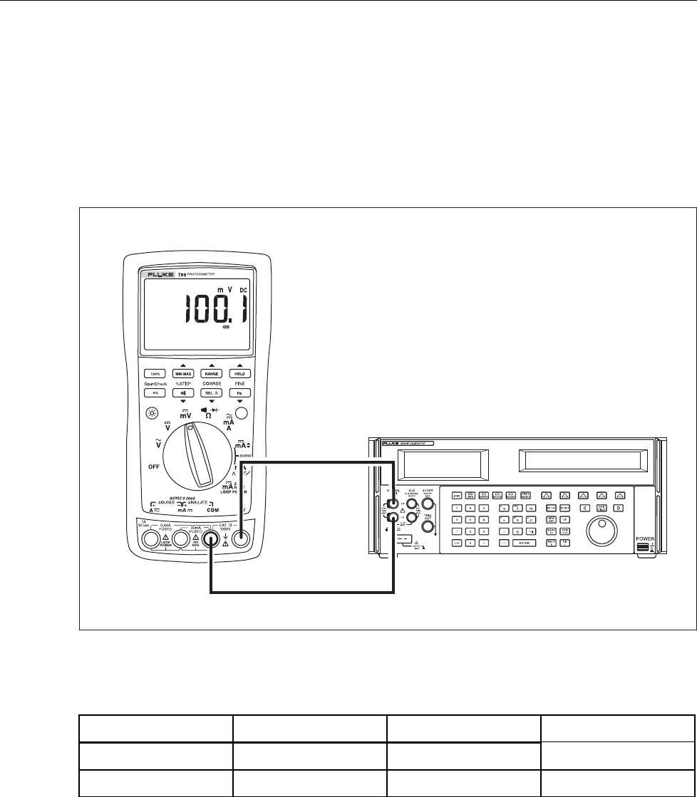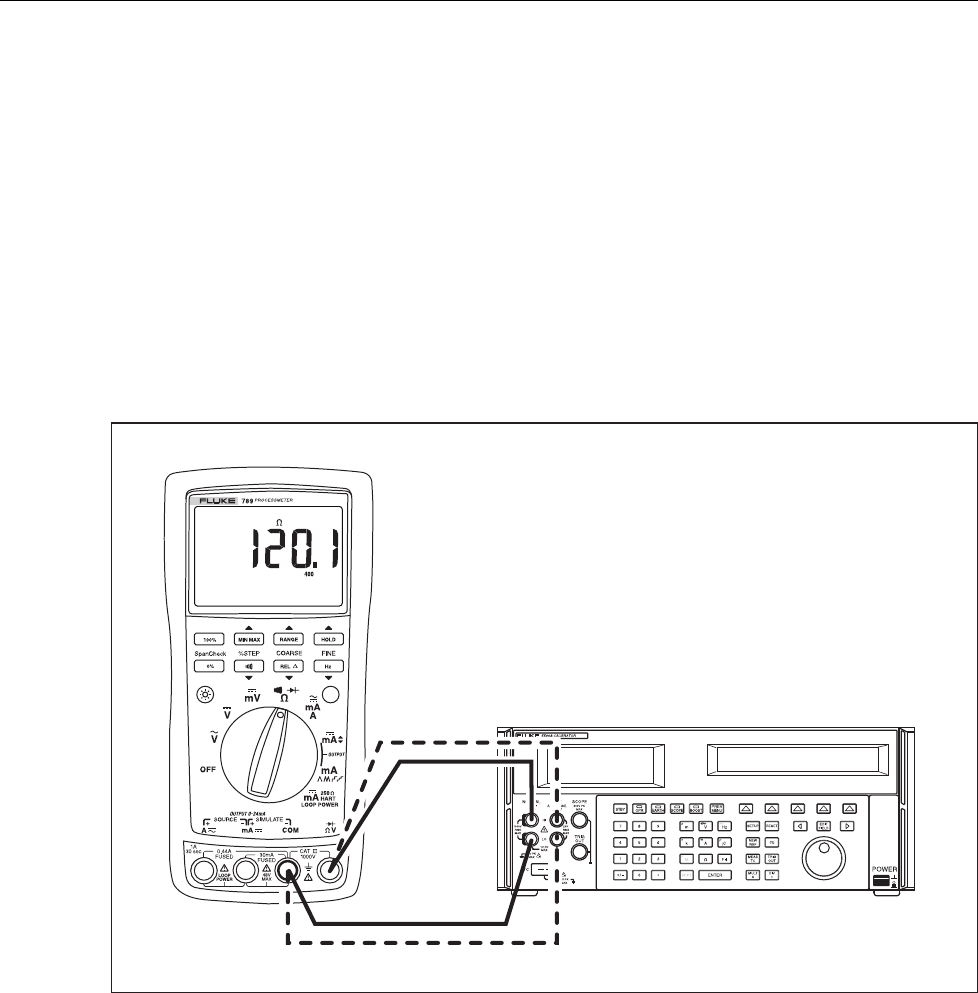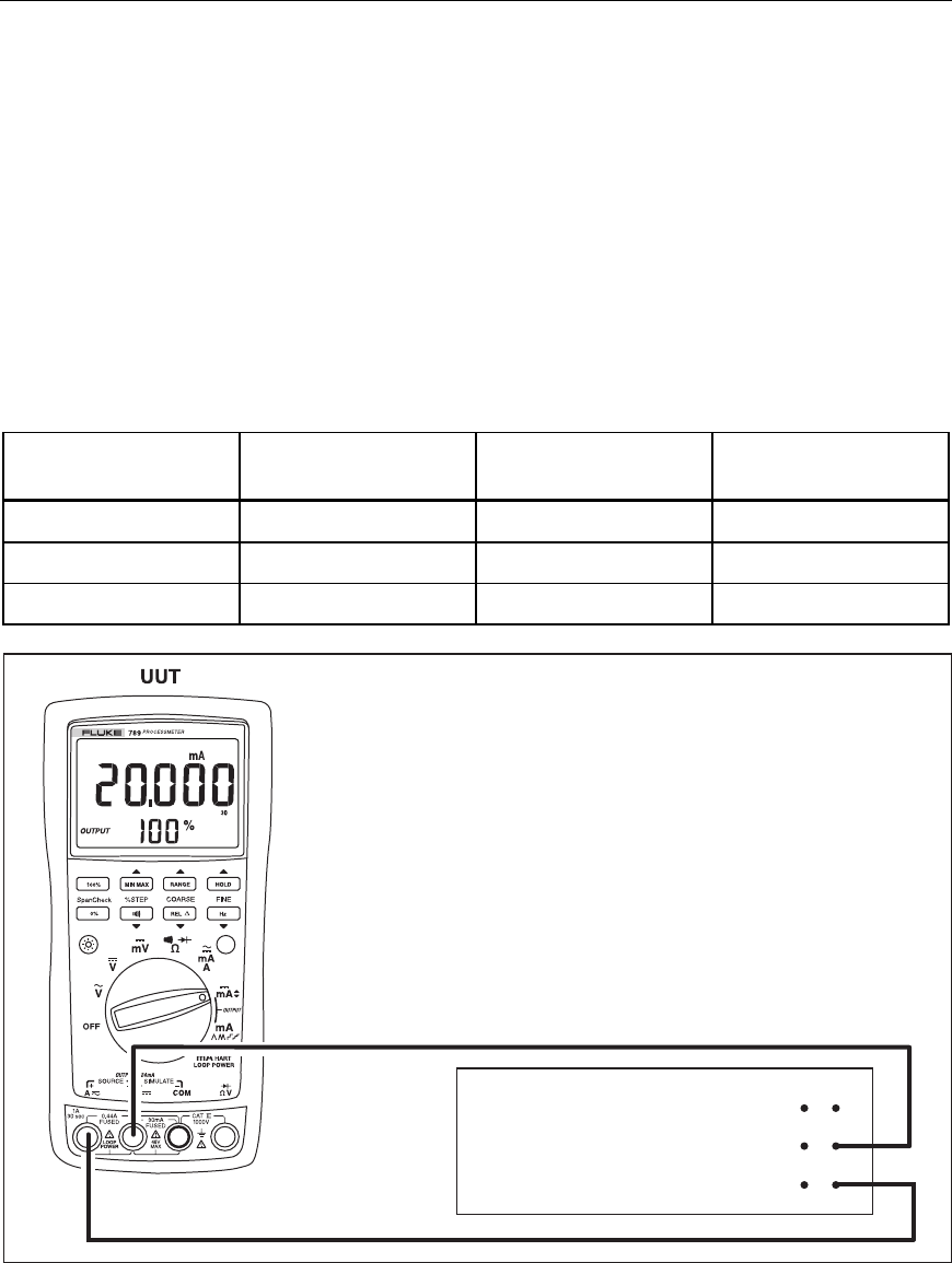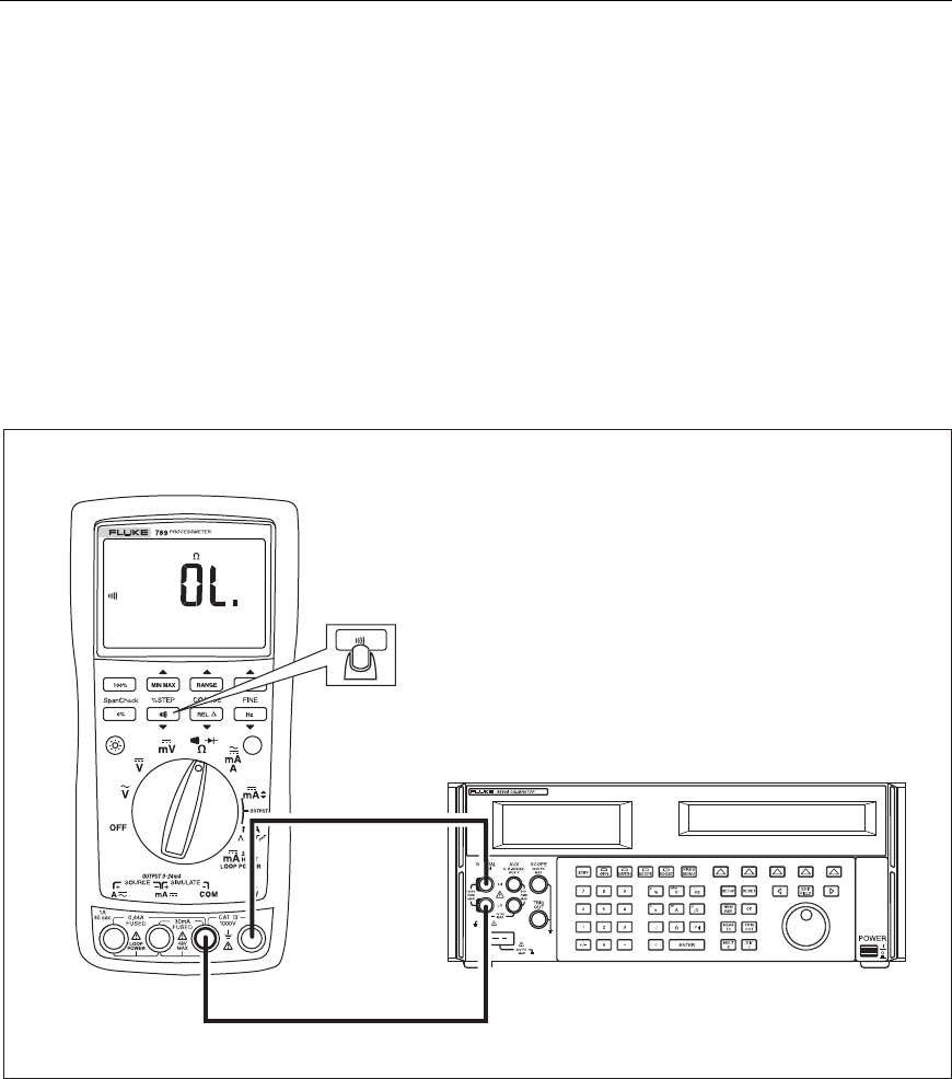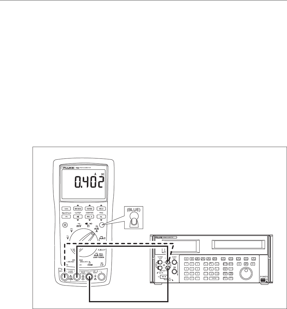 4. Apply 0 mA dc. Press after the sourced value appears. Do not alter the sourced