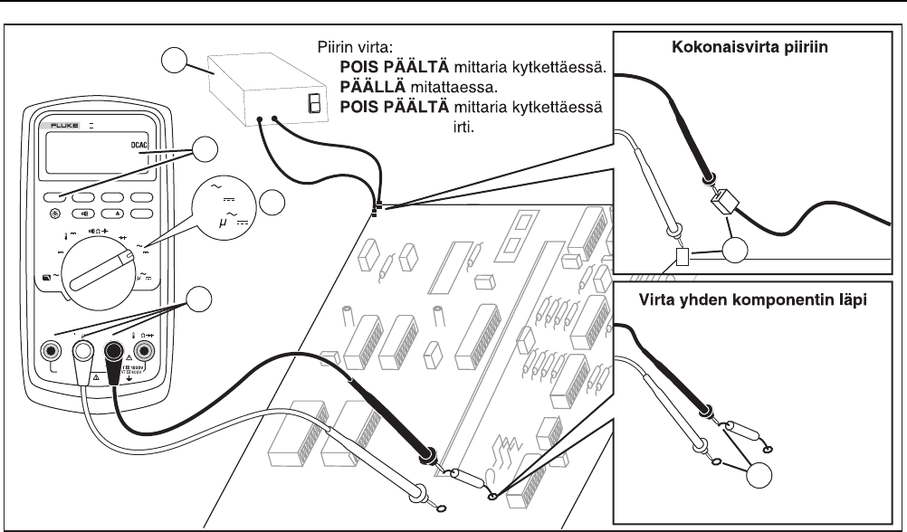 Vaihtovirta- ja tasavirtajännitteen mittaaminen .......................................................... 13