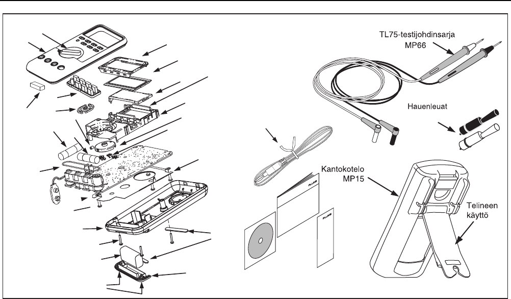 tuote kyseiseen huoltokeskukseen ja toimita sen mukana ongelman kuvaus, postikulut ja vakuutus maksettuina (FOB määränpää). Fluke ei vastaa