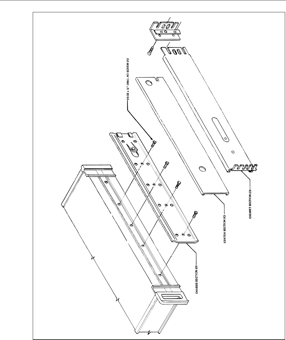 3. Install the cabinet section (D) of the center section (C) in the equipment rack.