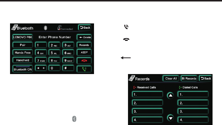 ( ):Receive or dial call key, when in