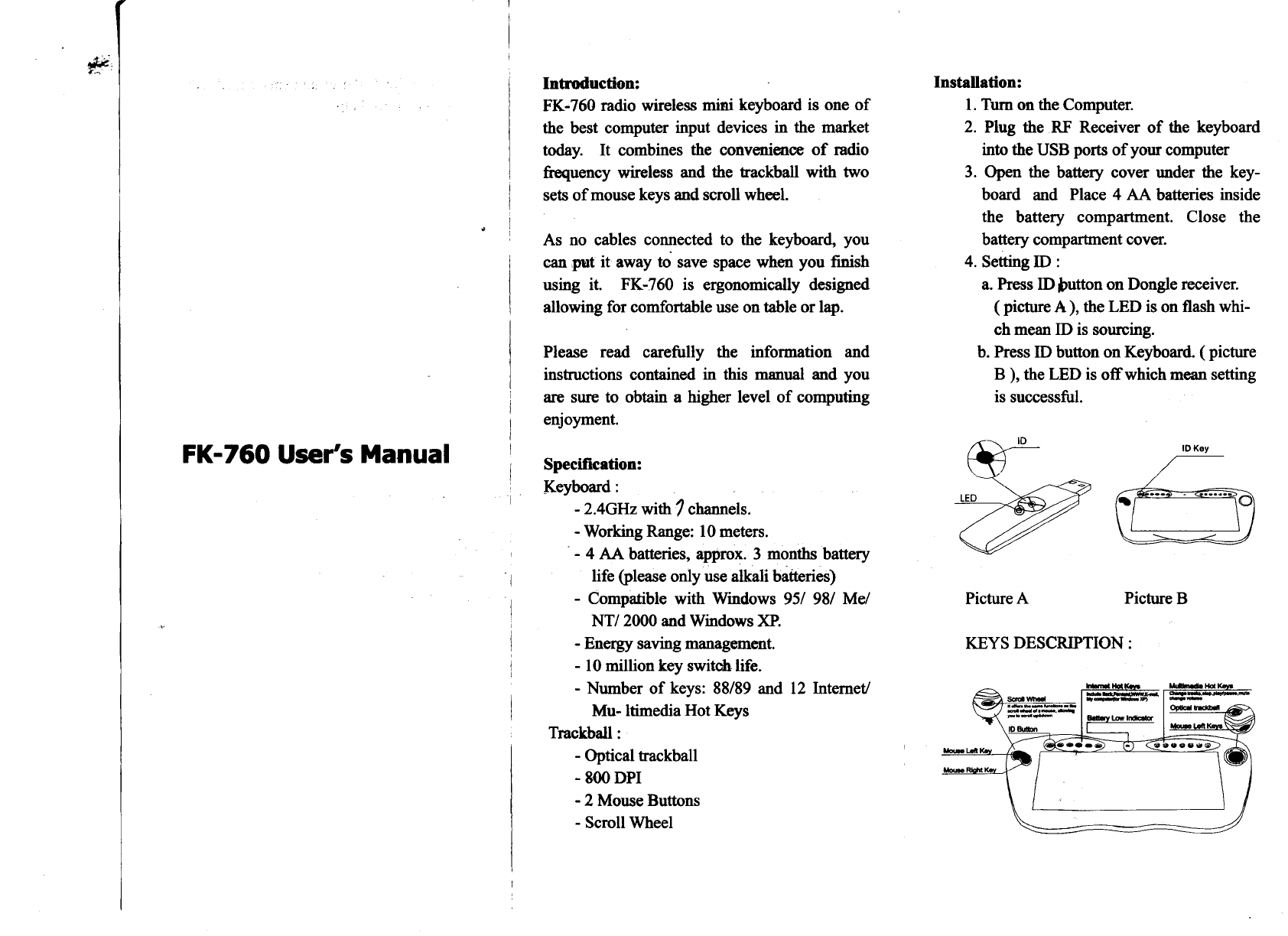 Focus Electronic Co FK760 RF Keyboard User Manual
