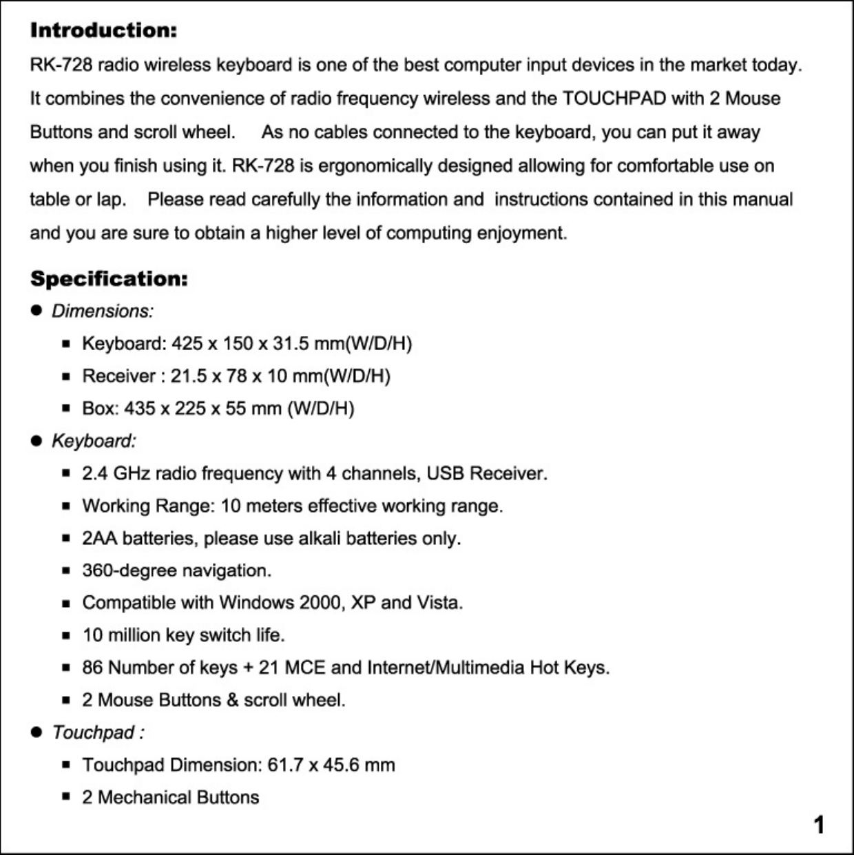Focus Electronic Co RK728 Wireless Keyboard User Manual A5FEADB6B6C7AF75A643A64C
