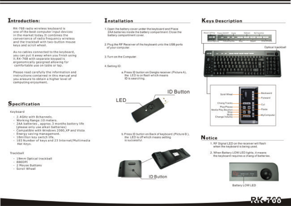 Focus Electronic Co RK768 Wireless Keyboard with Trackball User Manual print job