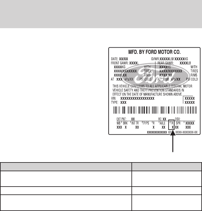 - INFORMATION CONTAINED ON THE TIRE SIDEWALL