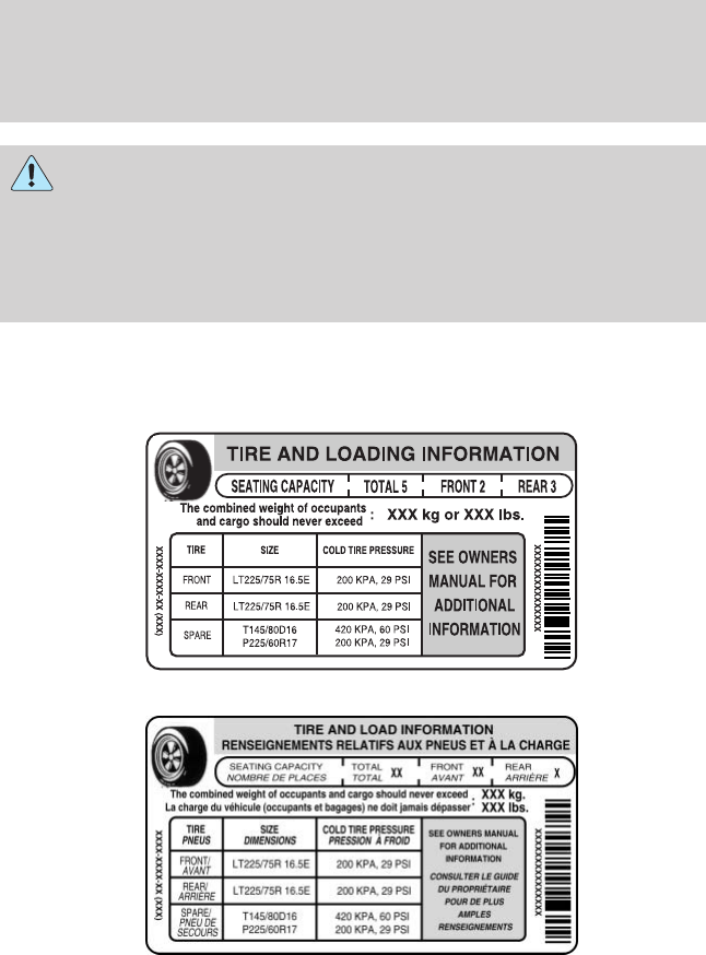 - INFORMATION CONTAINED ON THE TIRE SIDEWALL