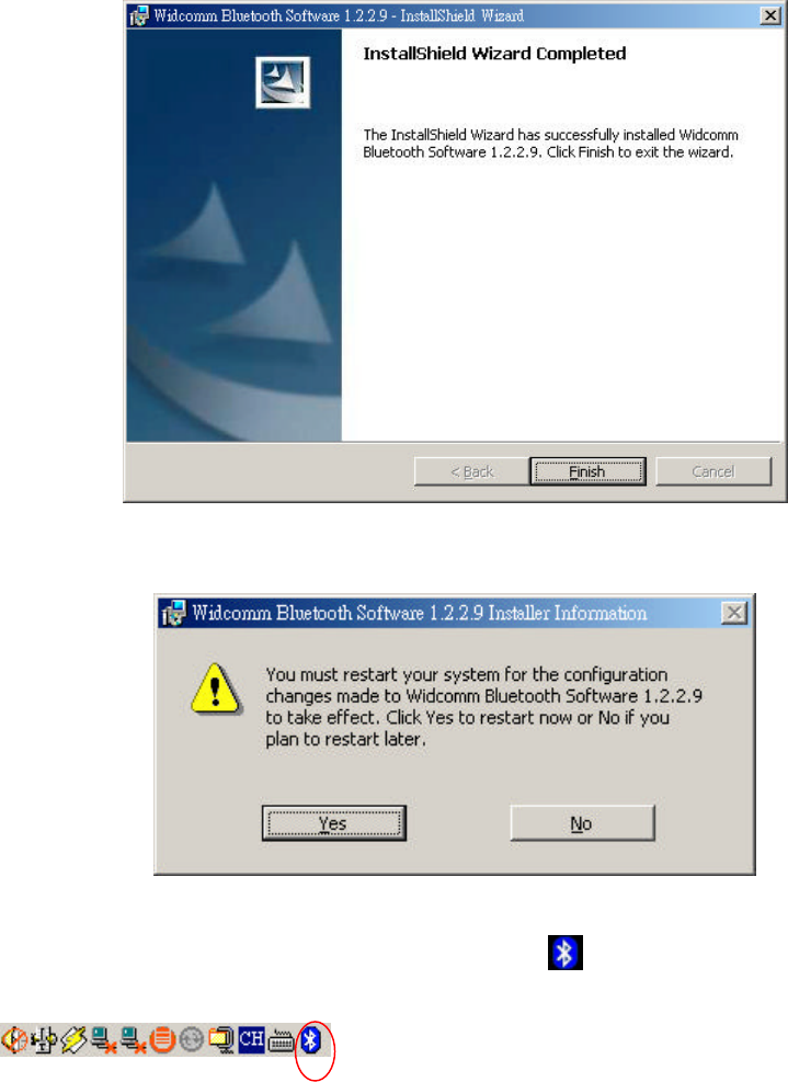 will install Finish and the ”Bluetooth Icon” Btw.ico resides in the Windows