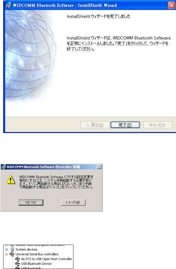 • "はい" をクリックし、コンピュータを再起動するとインストール完了です。