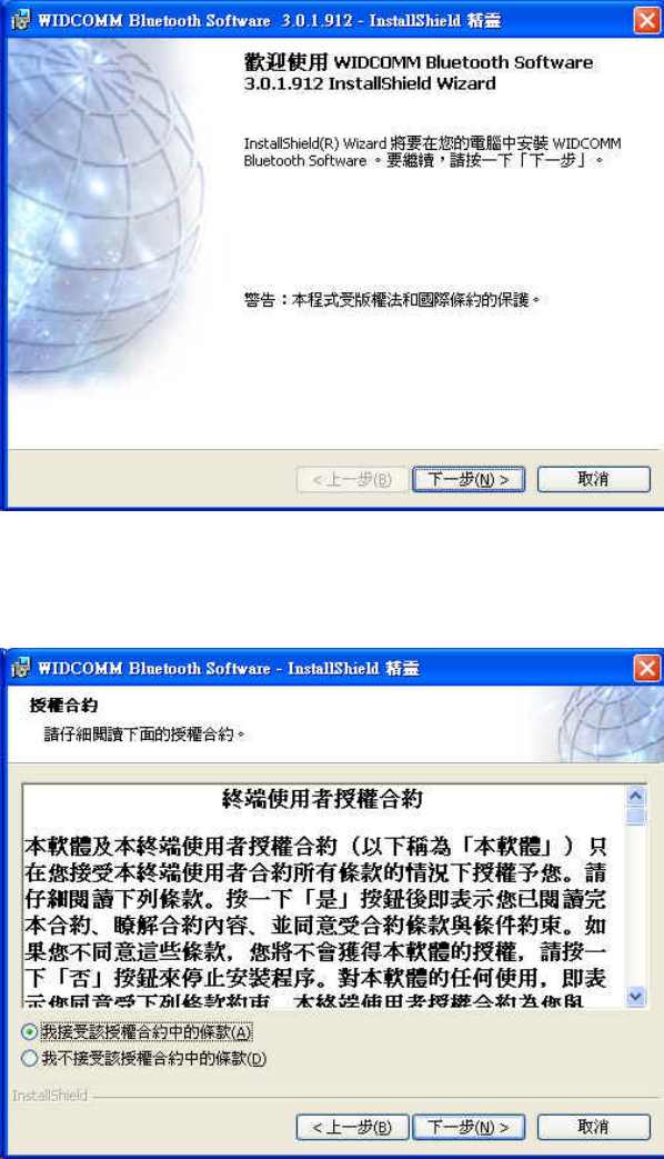 • 按"下一步",接受預設的安裝目錄,或是按下"變更"瀏覽您所想要新的藍芽