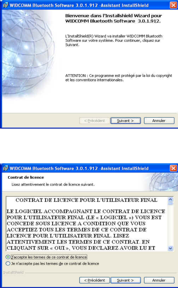 • Cliquez sur "Installer" pour lancer l’installation du logiciel Bluetooth.