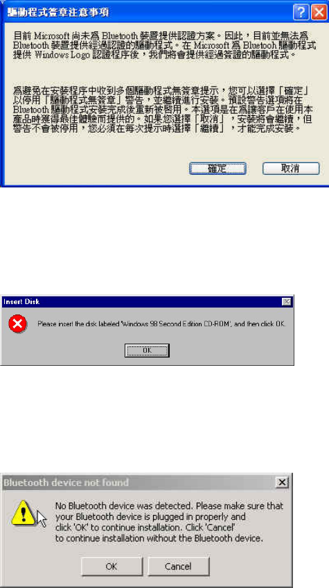 • 針對 Windows 2000/XP 的使用者, "Driver Signature Notice" 視窗會出現,請