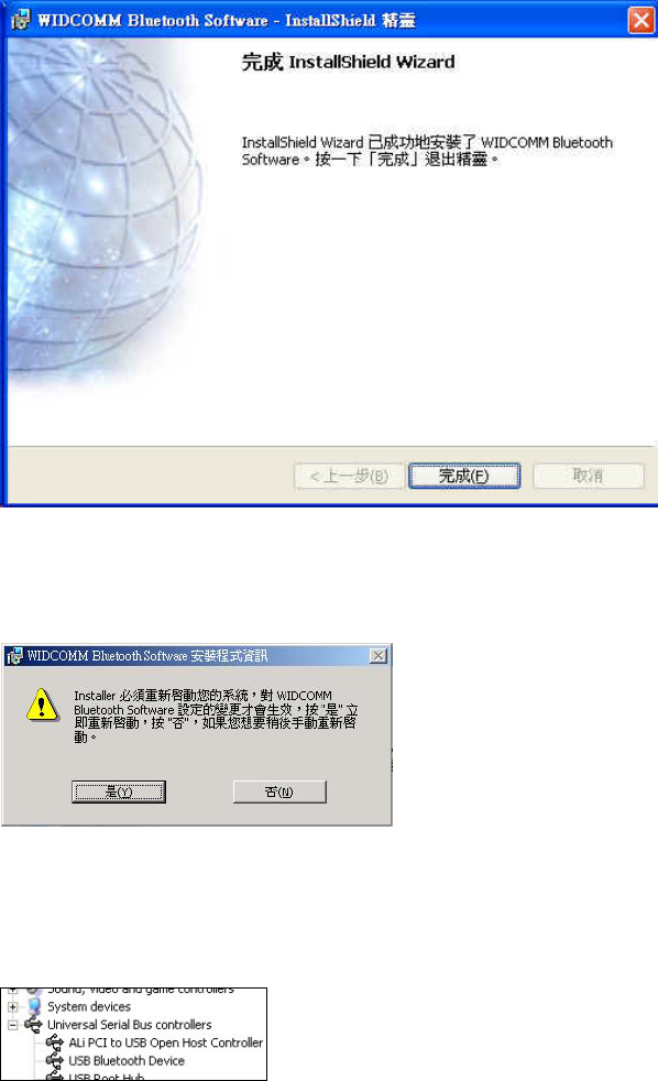 下確認 'USB Bluetooth Device' 已經完成安裝.