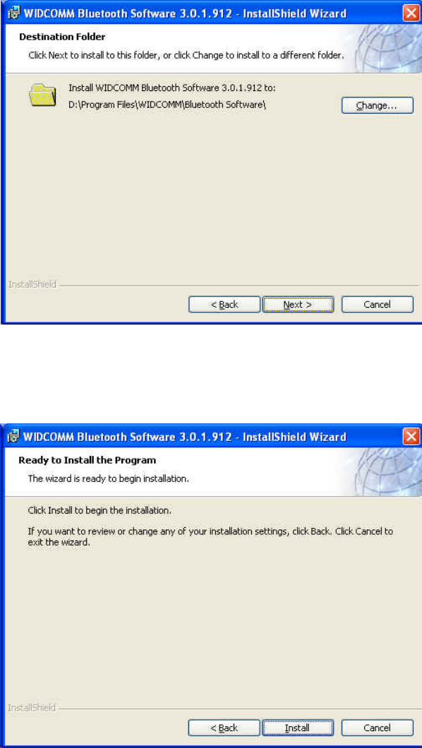 • 按"下一步",接受预设的安装目录,或是按下"变更"浏览您所想要新的蓝芽