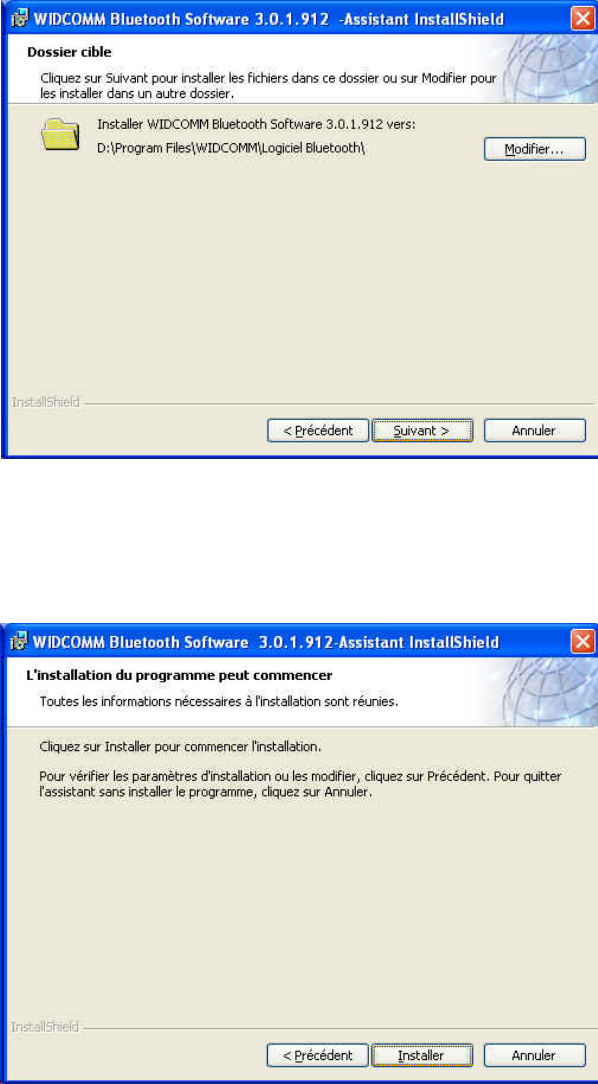 • Cliquez sur "Installer" pour lancer l’installation du logiciel Bluetooth.