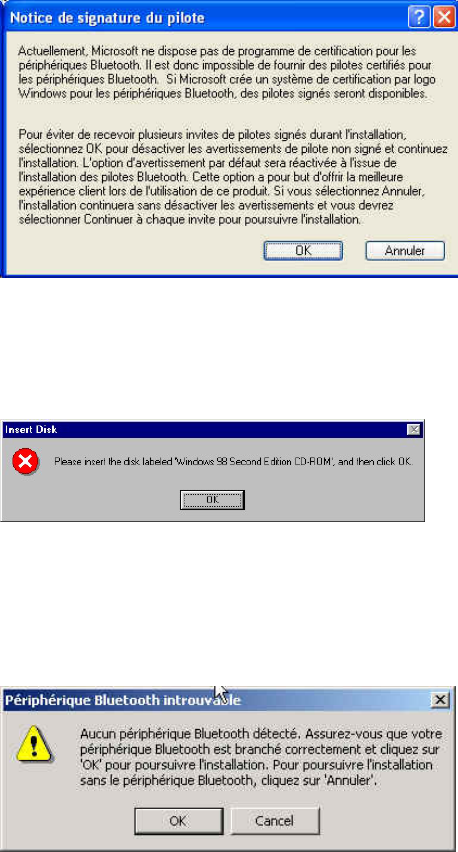 • Pour les utilisateurs de Windows 2000/XP, la fenêtre "Notice de signature du