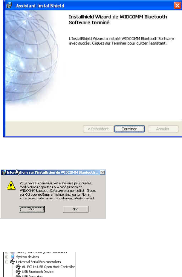 l’adaptateur Bluetooth USB au port USB. Cliquez sur "OK".
