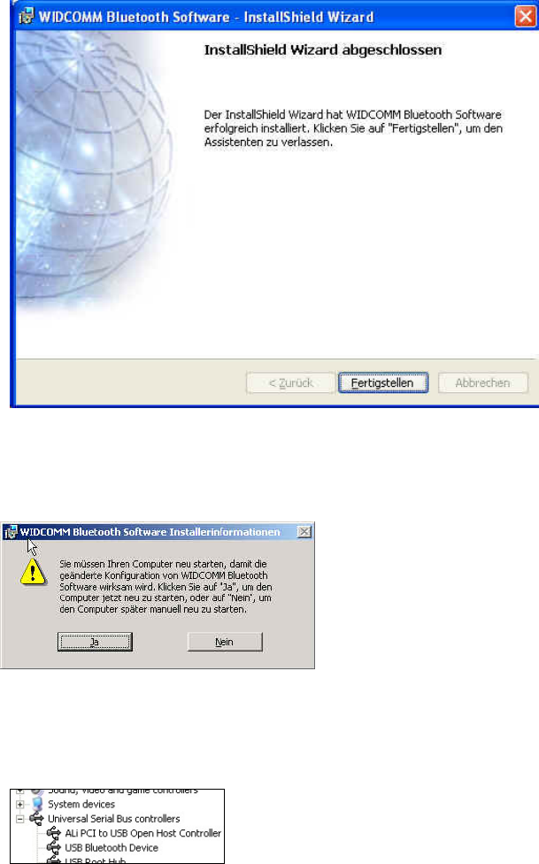 • Click Finish to complete the bluetooth software installation.