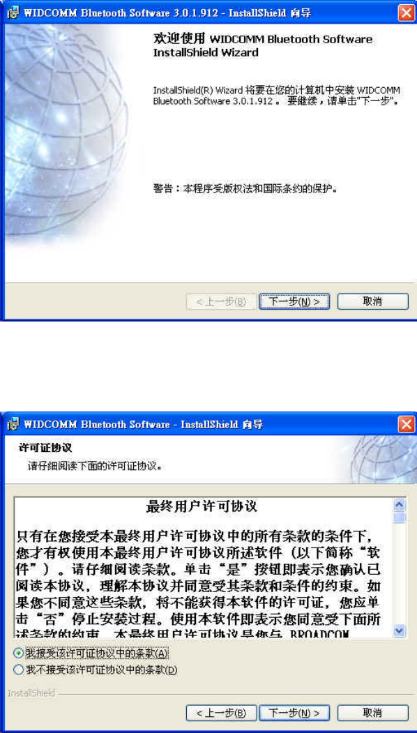 • 按"下一步",接受預設的安裝目錄,或是按下"變更"瀏覽您所想要新的藍芽