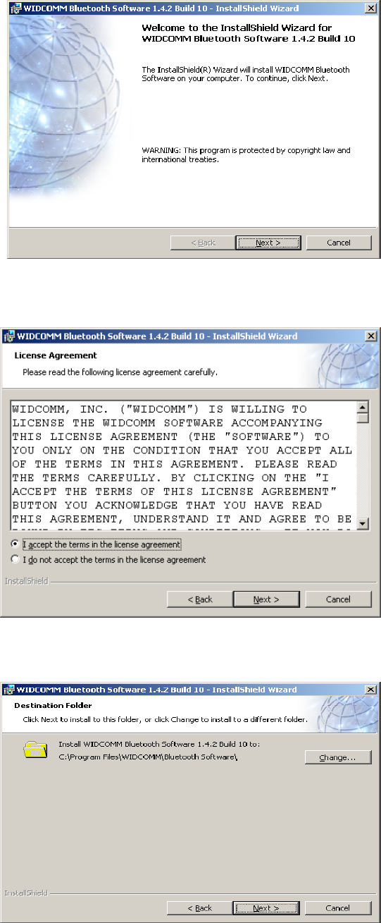 Note: 1. You should install the Widcomm’s Bluetooth Software for Windows (BTW) before you use the