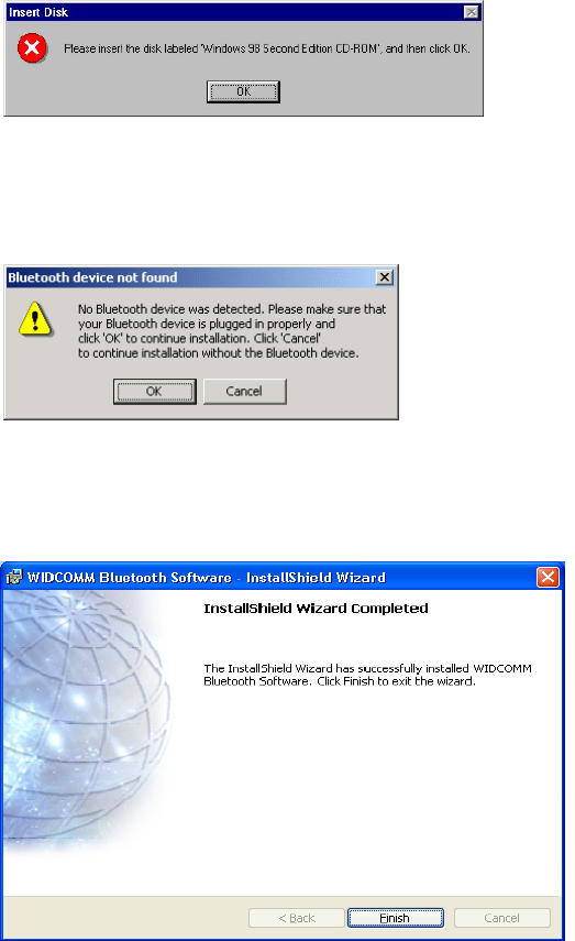 For Windows 98 users, a window appears which asks you to insert the Windows 98 CD-Rom.