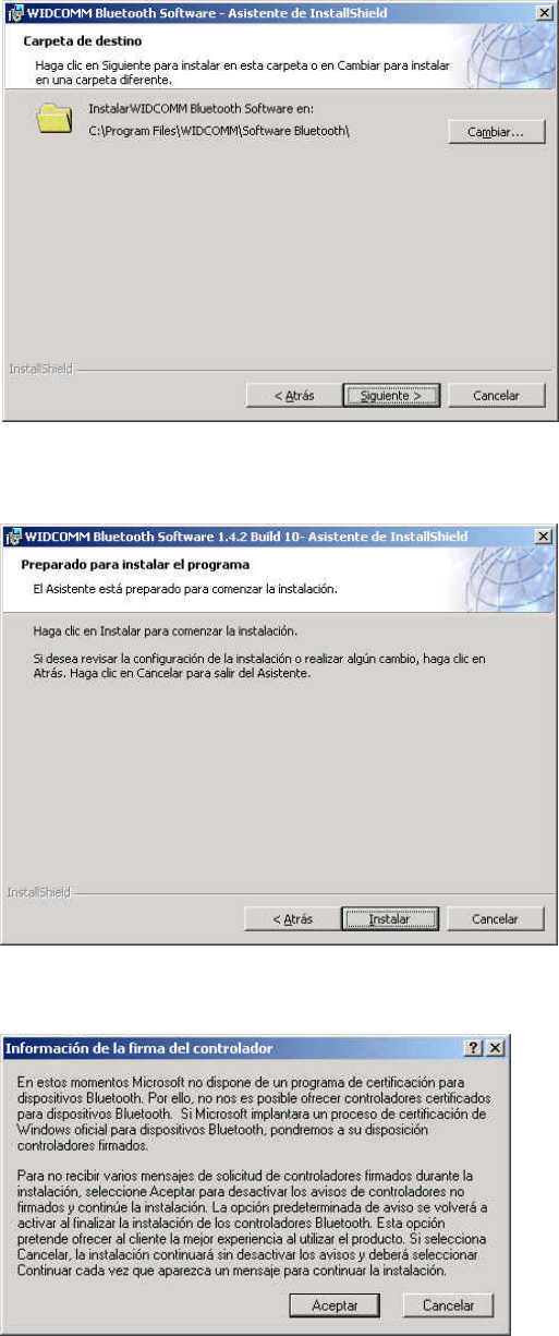 • Haga clic en "Instalar" para comenzar la instalación del software Bluetooth.