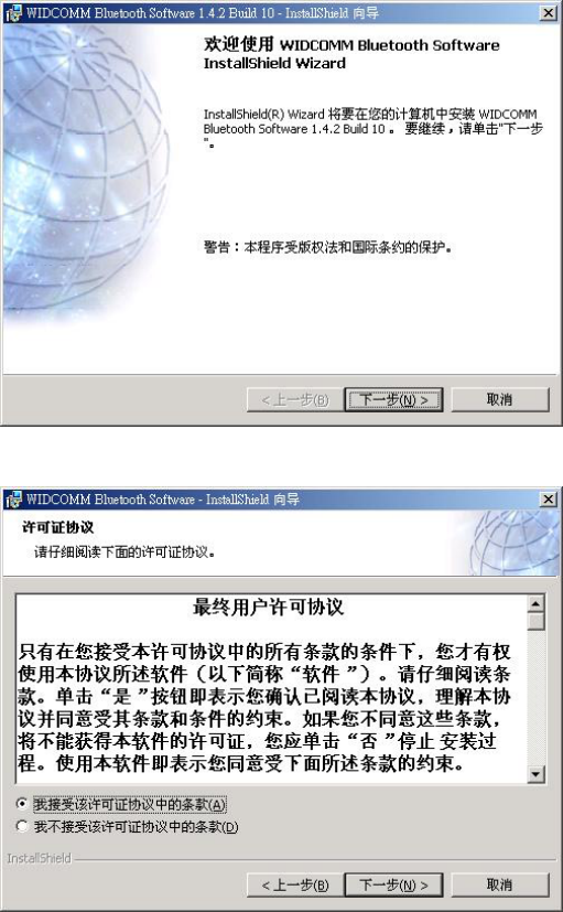 注意: 在使用蓝芽配接器之前,请先安装 Widcomm 的 Windows 版蓝芽软件