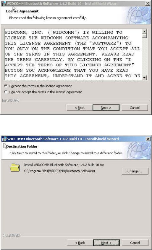 new destination folder for the Bluetooth software.