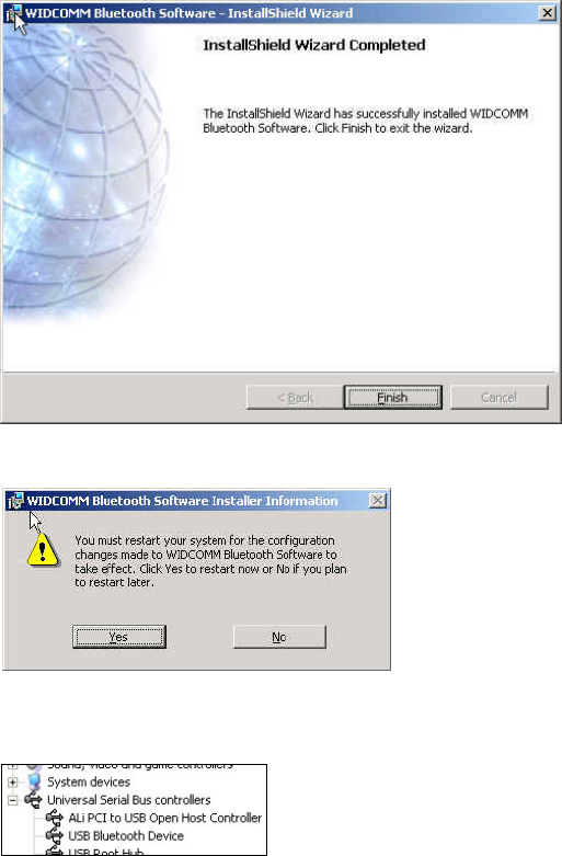• Click Finish to complete the bluetooth software installation.