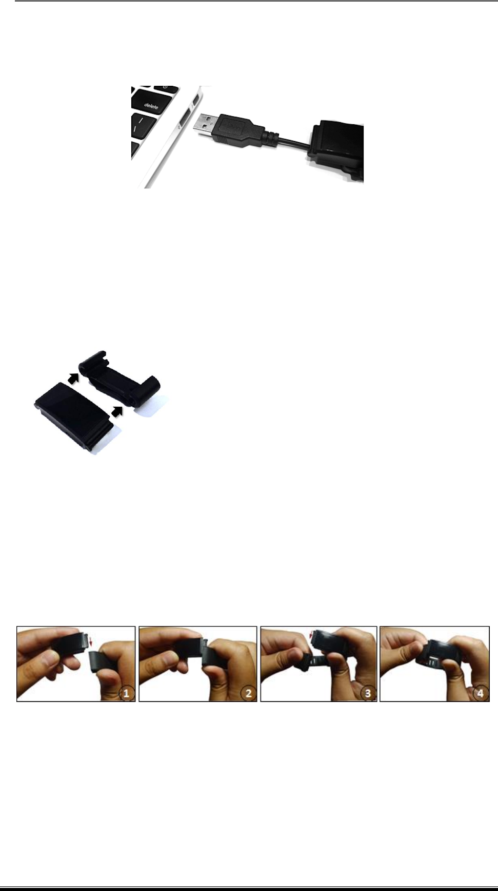 1. Snap in the Trio® Tracker to the USB charger. Please follow (a) and (b) procedures.