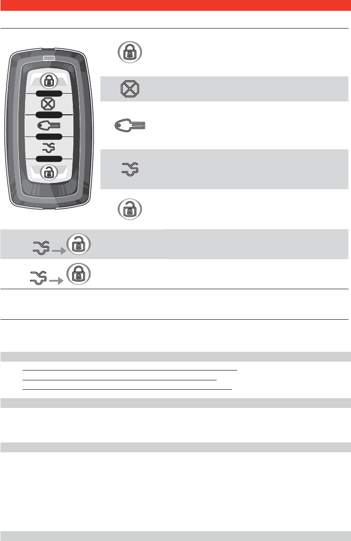 •Press the UNLOCK button TWICE to stop the alarm sound, deactivate the Alarm, and unlock the doors.