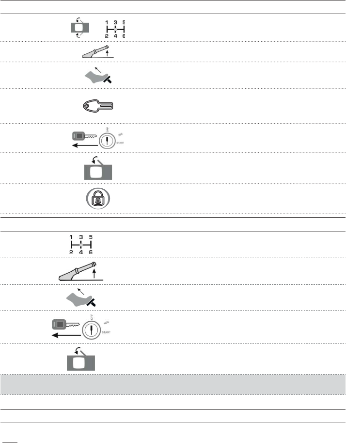 Parking Light flashes (before starting) : Parking Light flashes (after disarm) :