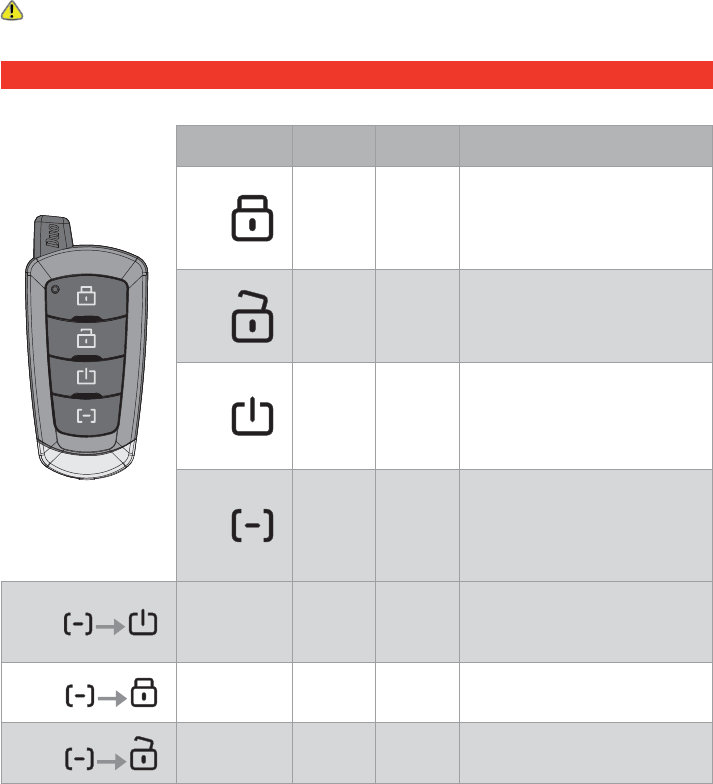 •The system can be con gured in three different ways: Remote Start only, alarm only or alarm