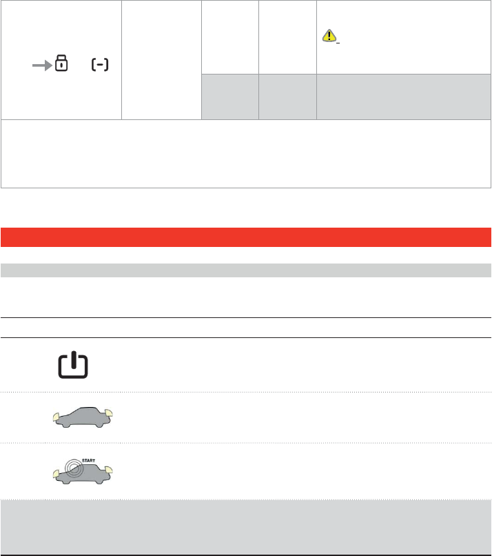 •Press the UNLOCK button TWICE to stop the alarm sound, deactivate the Alarm, and unlock