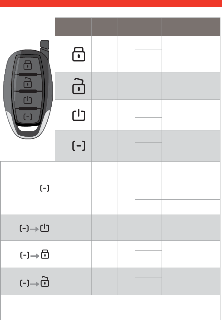 •Press the UNLOCK button TWICE to stop the alarm sound, deactivate the Alarm, and unlock the doors.