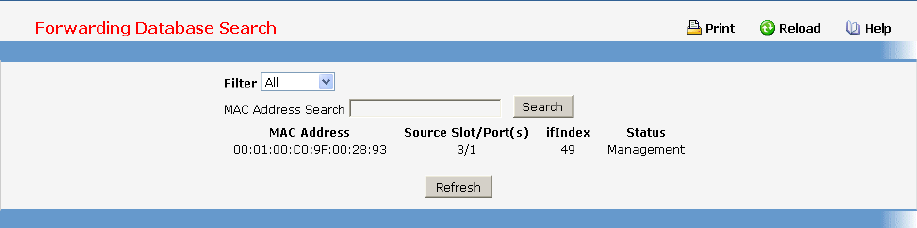 - L2 MAC Address and Multicast Forwarding Database Tables