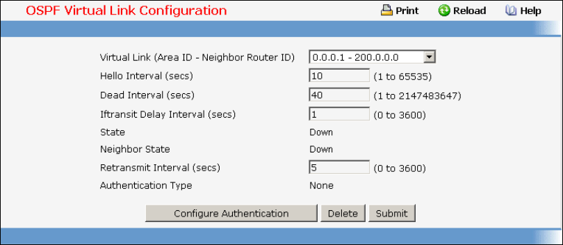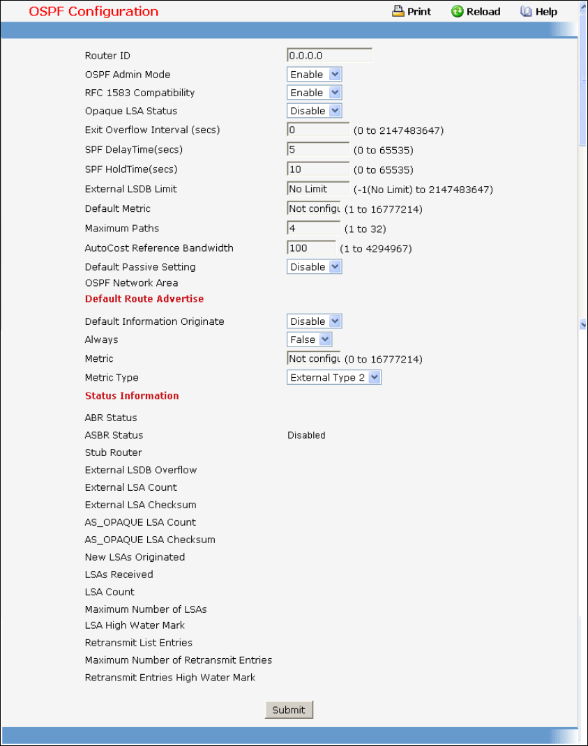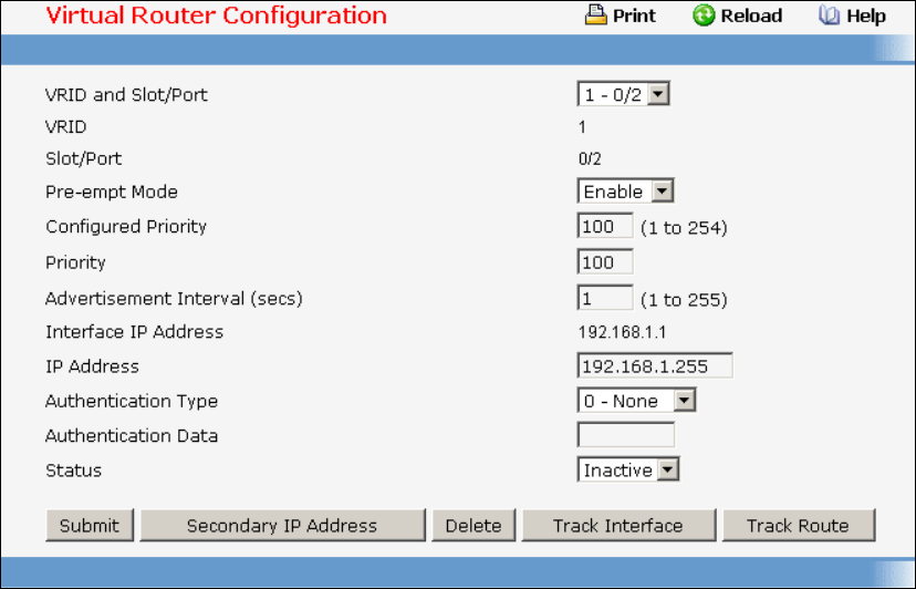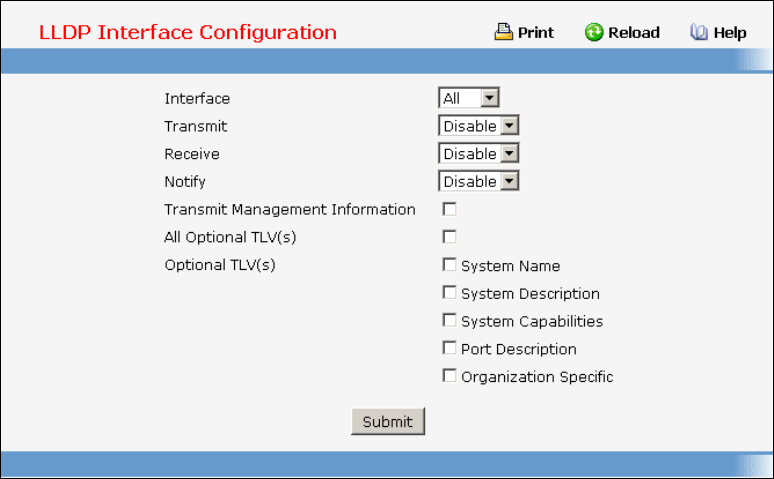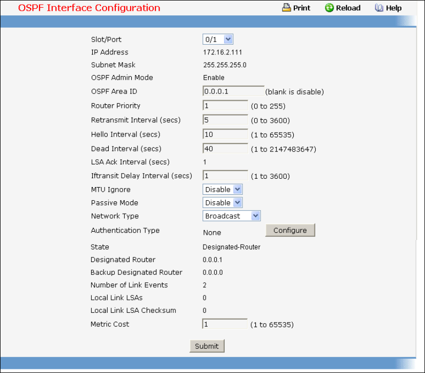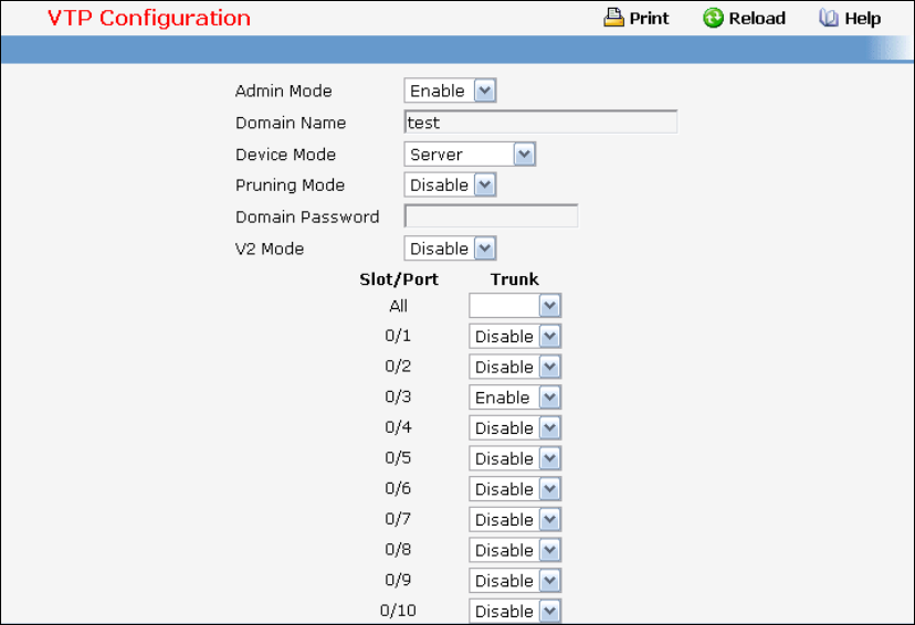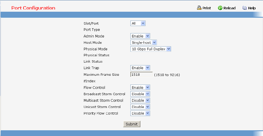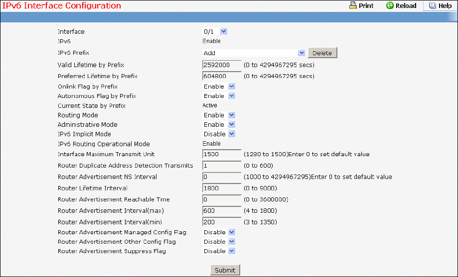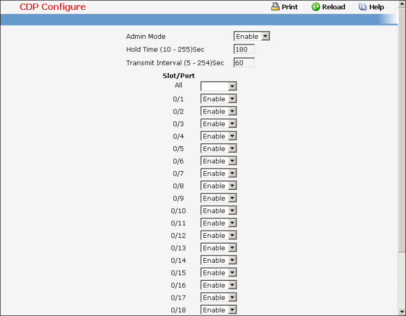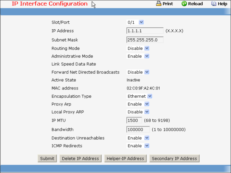 Interface Mode - elect enable or disable from the pulldown menu to set the administrative status of