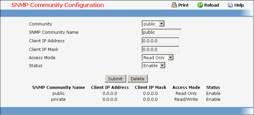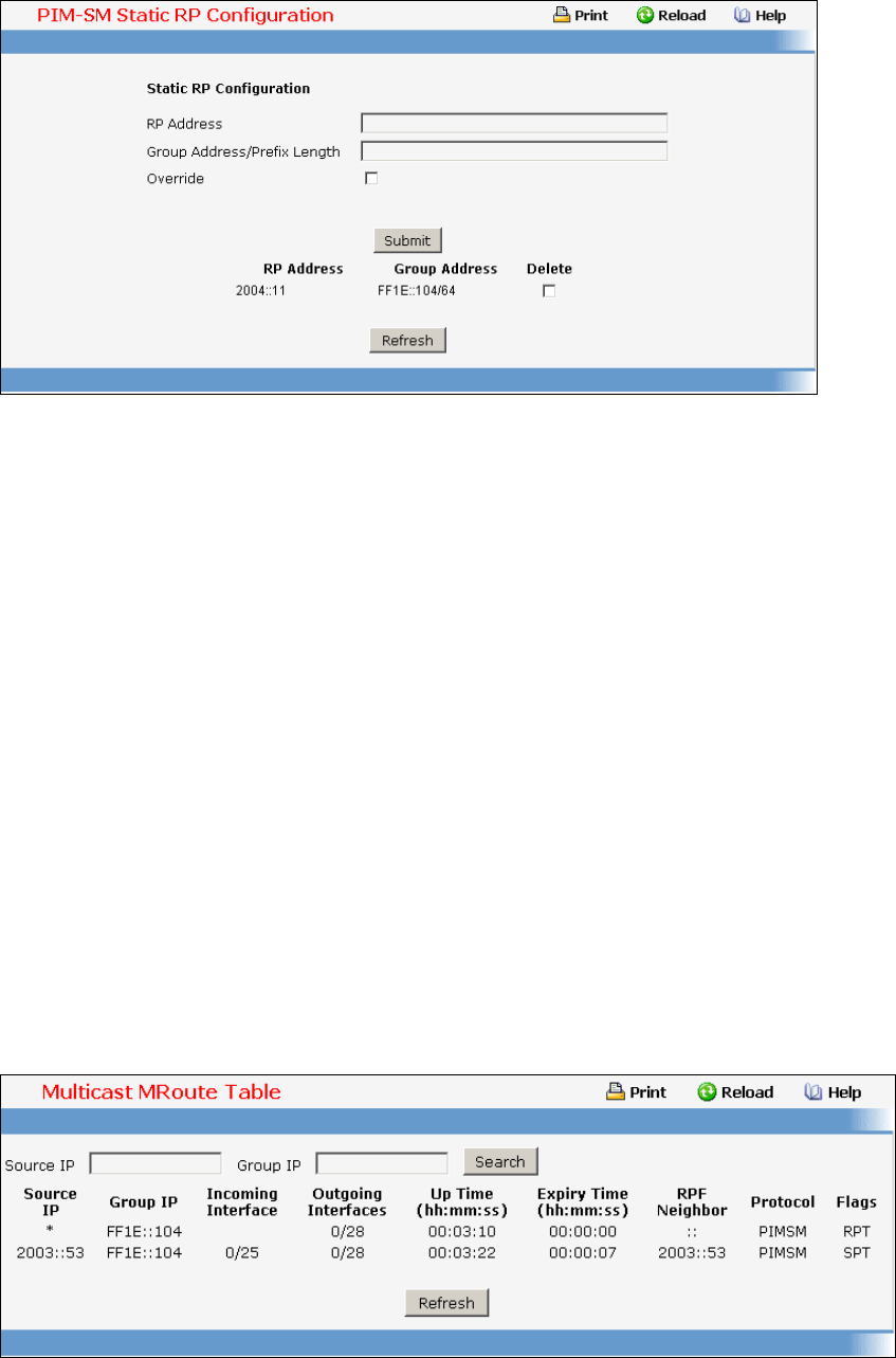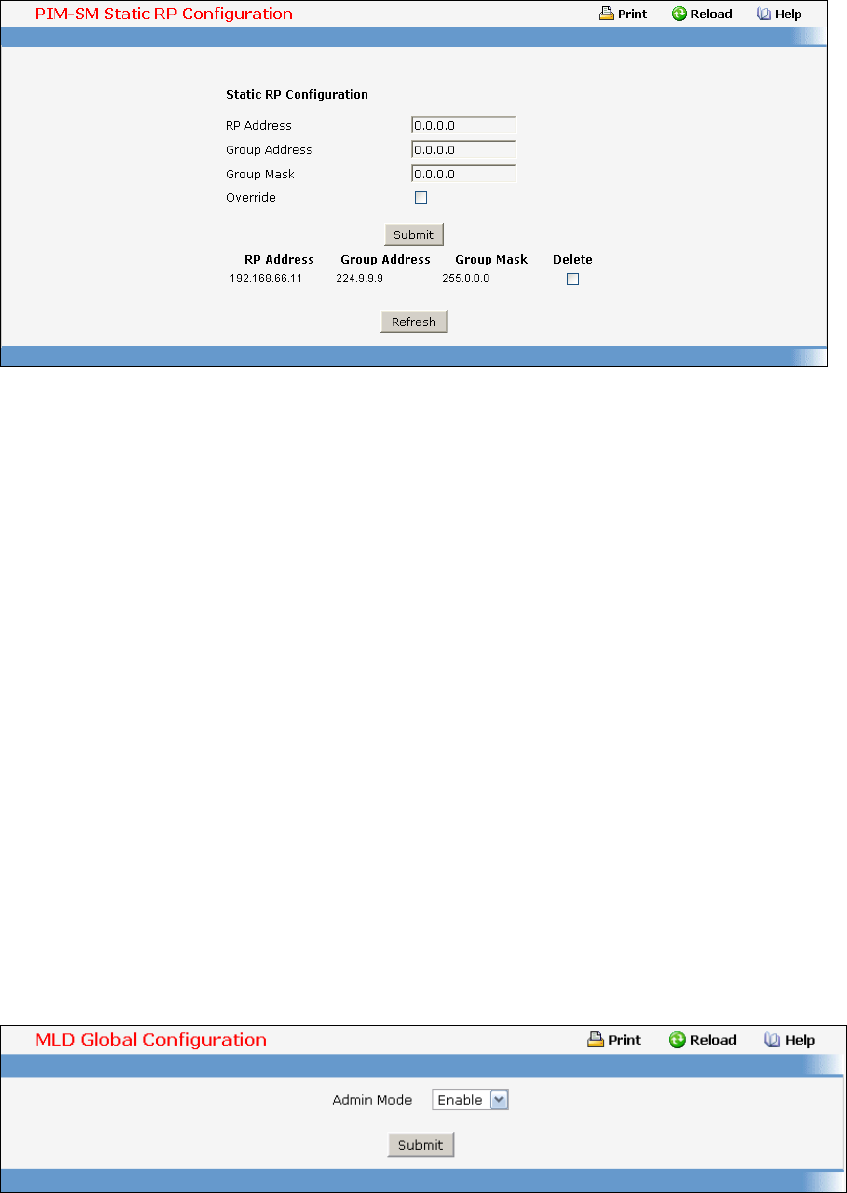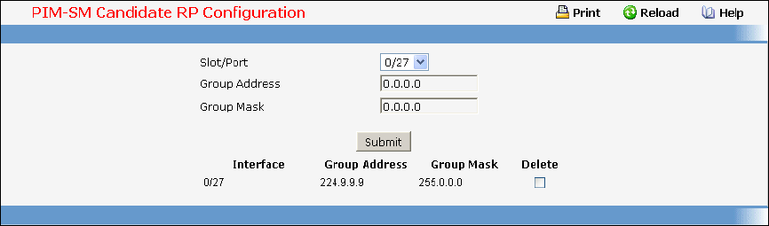 Delete - Attempts to remove the specified Static RP Address for the PIM-SM router. Configuration