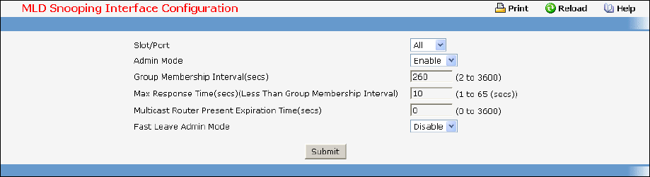11.9.1.6 Configuring MLD Proxy Interface Congiuration Page