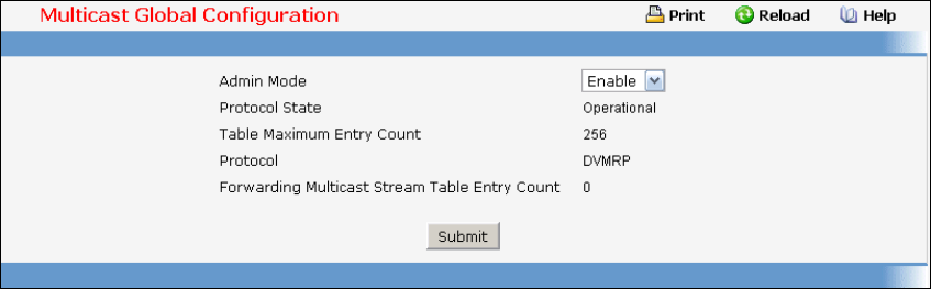 PIMSM Admin Mode - Select enable or disable from the pulldown menu to set the administrative