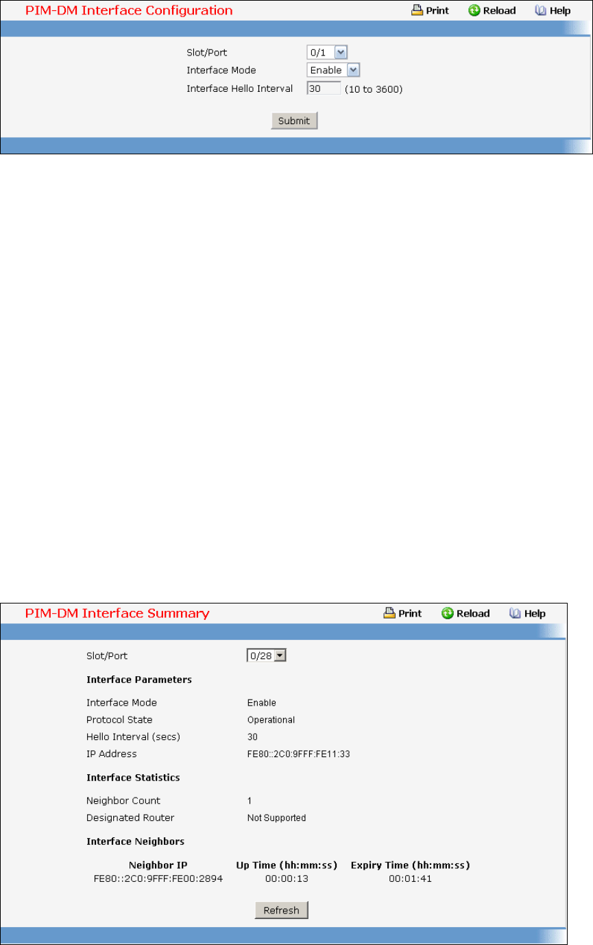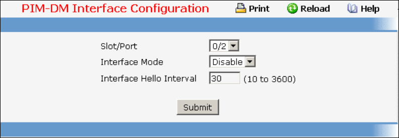 11.9.2.2 Configuring PIM-DM Interface Configuration Page