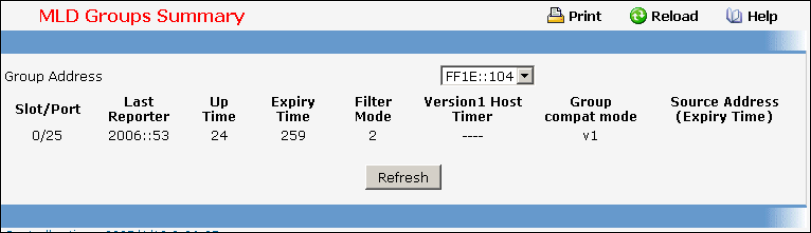 Multicast Group IPv6 - Select the IPv6 multicast group address for which data is to be displayed. If